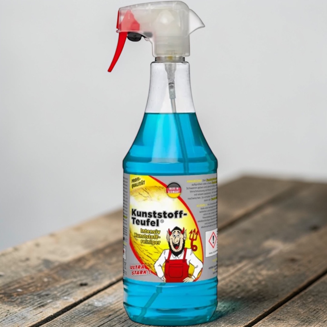 Kunststoff-Teufel is een zeer actief, elektrolytisch reinigingsproduct. Het reinigt kunststoffen en andere alkalibestendige oppervlakken (zoals keukens, jaloezieën, caravans, tuinmeubelen, dekzeilen, autointerieurs en nog veel meer) met gemak en laat ze brandschoon achter.