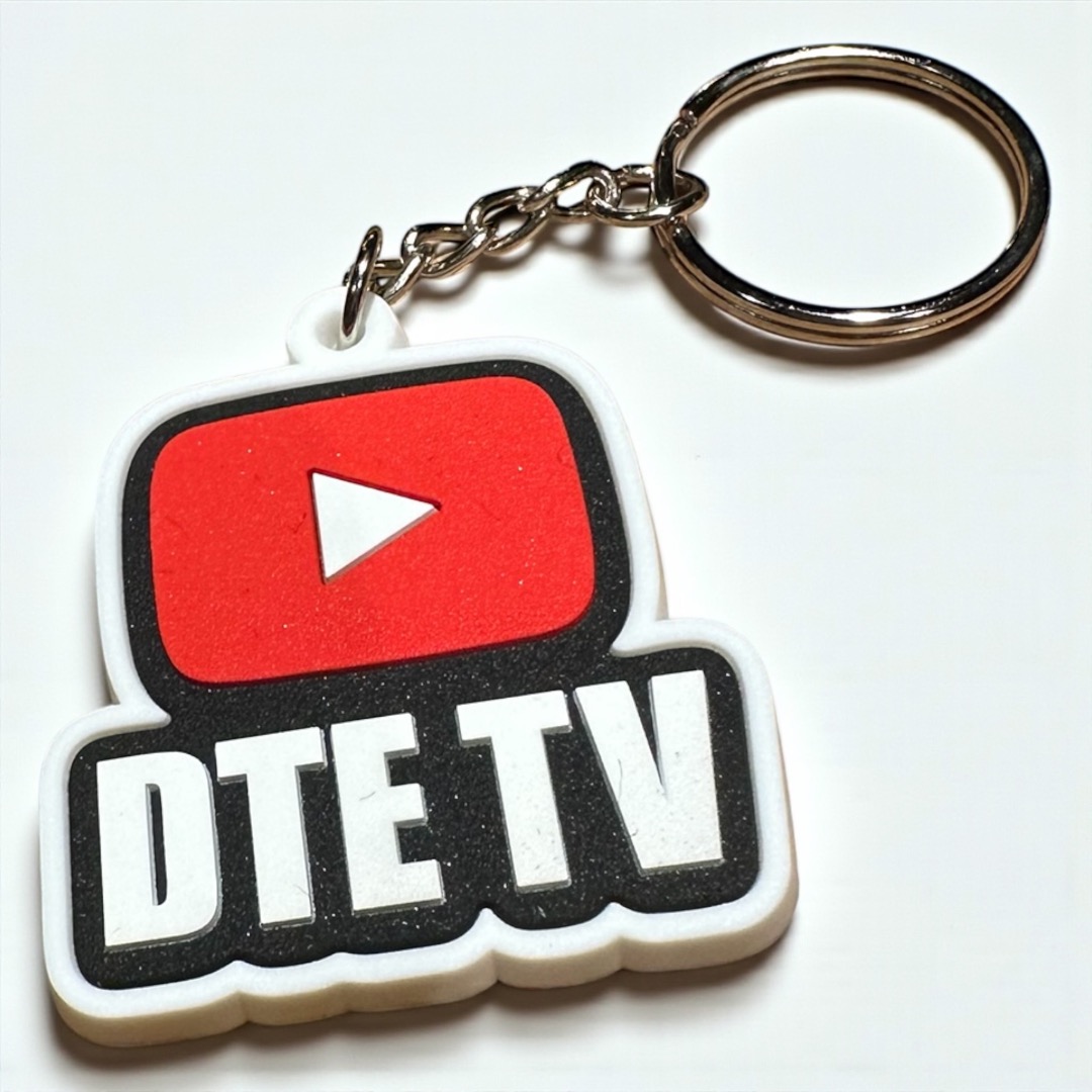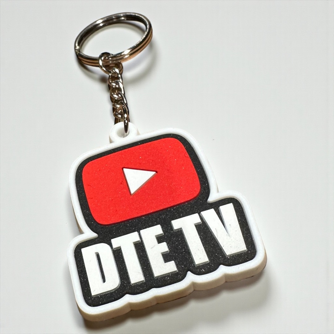 De originele sleutelhanger van DTE TV in een rubberen variant.