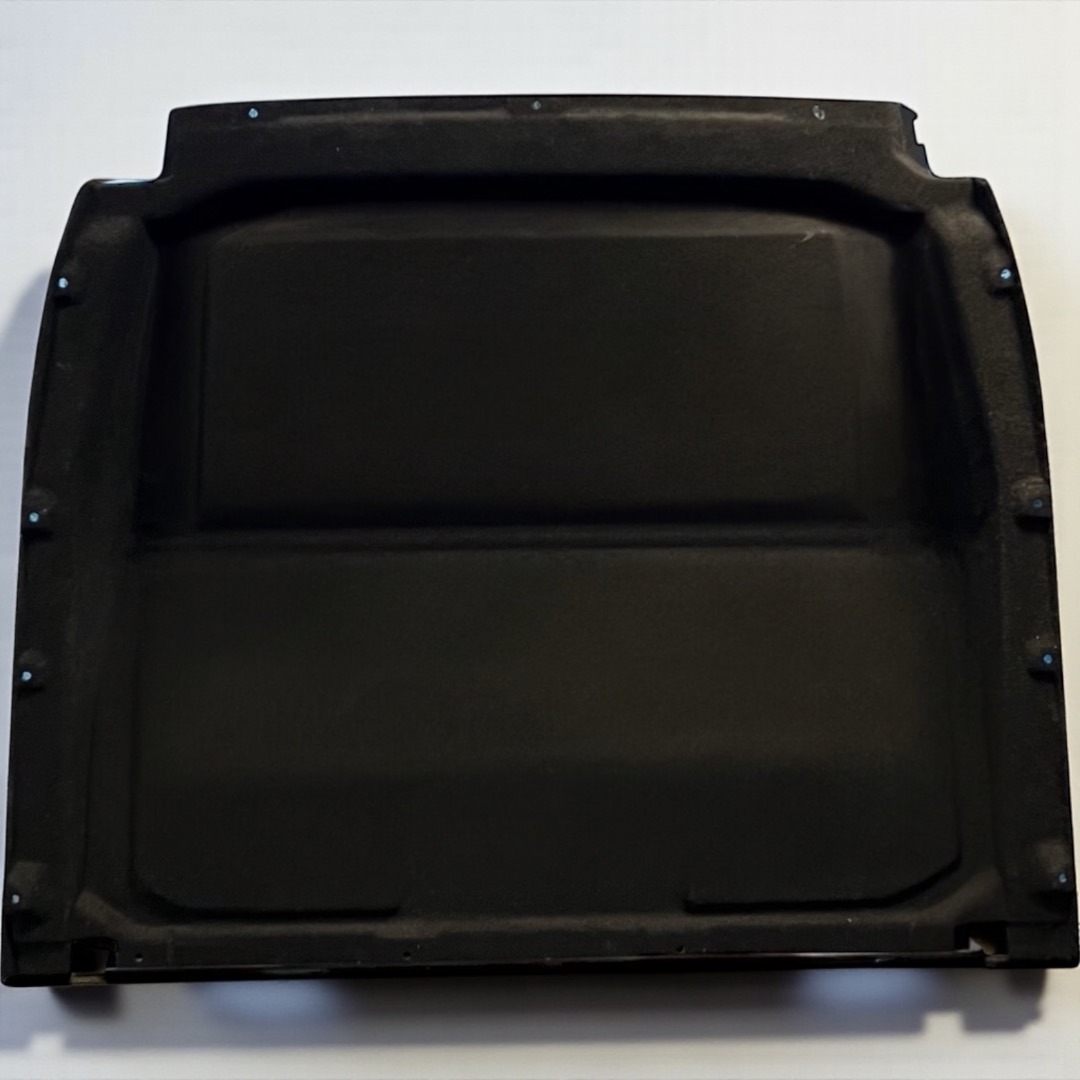 De cabine zijde waar je tegenaan kijkt vanuit je stoel, is gestoffferd met zwart stof.
